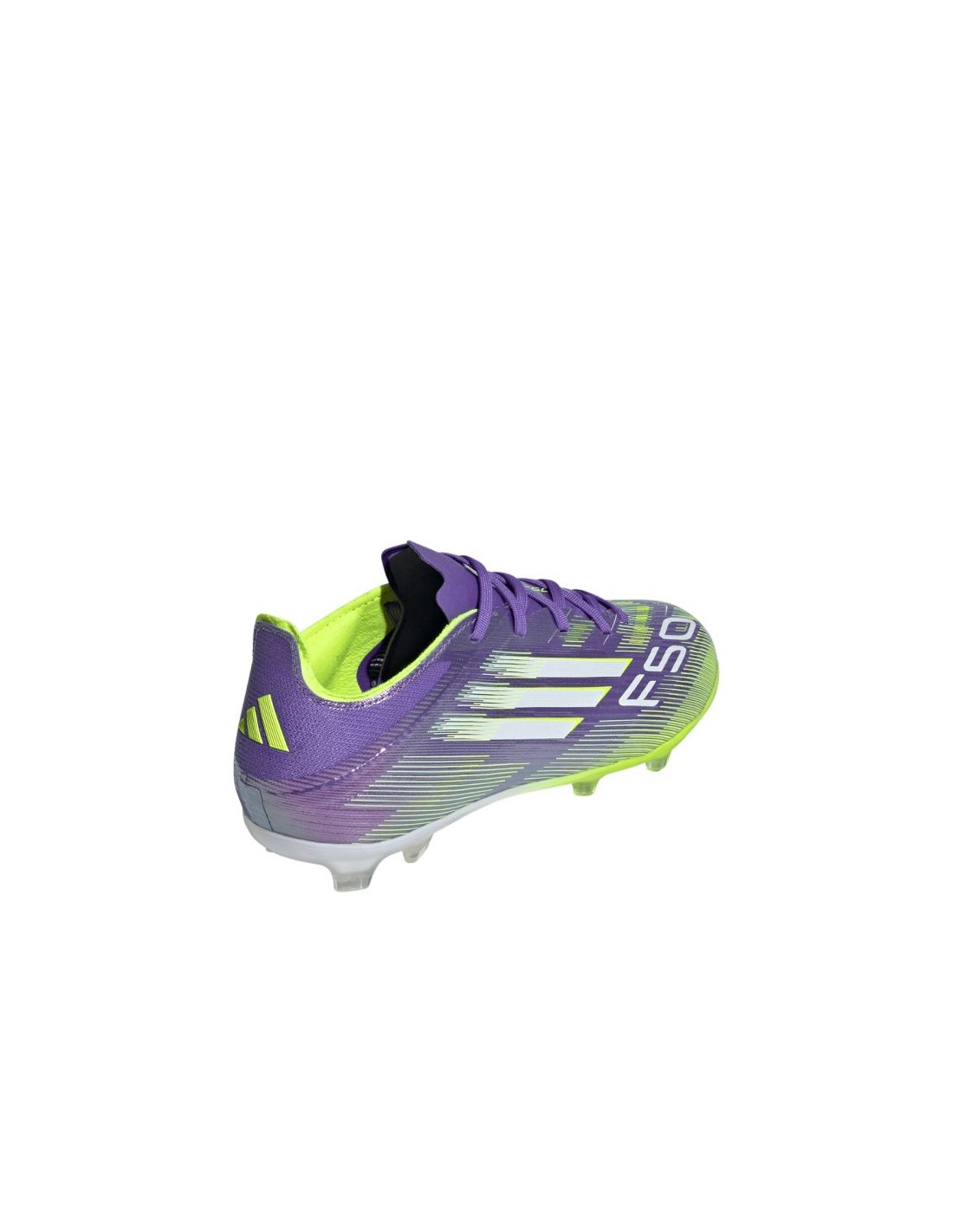 adidas F50 Elite FG JH7714 kids\’ soccer shoes Properties: adidas football boots offer amazing acceleration and an original, unique design. The presented model is part of the Radiant Blaze Pack collection. The stripes create a modern brand logo and emphasize the prestigious character of the shoes. Shoes designed for playing on natural surfaces and supporting quick reactions. Technical data: Standard fit · Lace-up model Fibertouch upper with Sprintweb 3D texture adidas PRIMEKNIT collar · TPU reinforced tongue · Sprintplate 360 outsole for playing on firm ground · The model contains at least 20% recycled materials