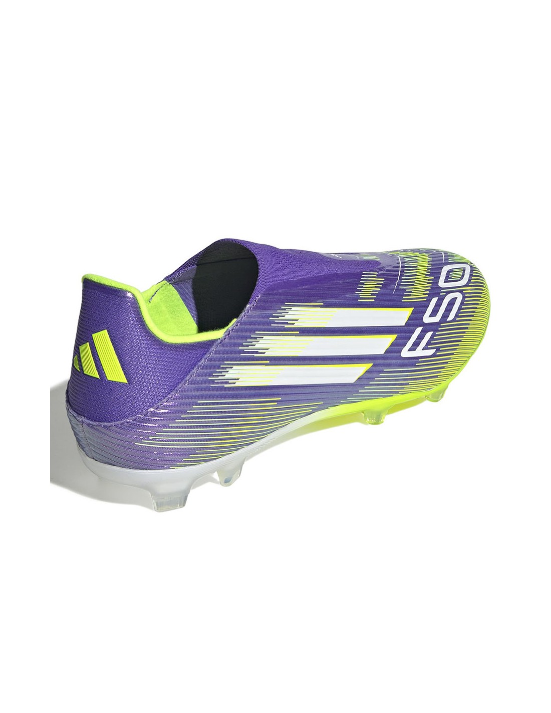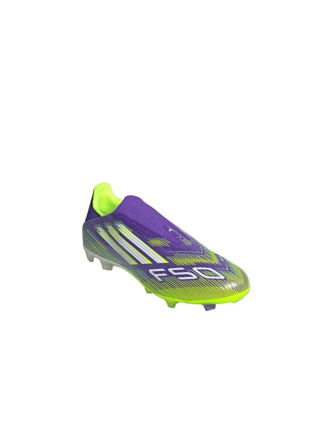 adidas F50 League LL FG/MG JH7734 football boots Properties: The semi-amateur adidas F50 football boots from the Radiant Blaze Pack collection are designed for players who prefer playing on natural and artificial turf. The Fiberskin upper with Sprintgri pattern locks down your foot with a snug, laceless collar. Low profile. The Sprintplate 360 outsole is designed for acceleration on a variety of surfaces. This product is made from at least 20% recycled materials.
