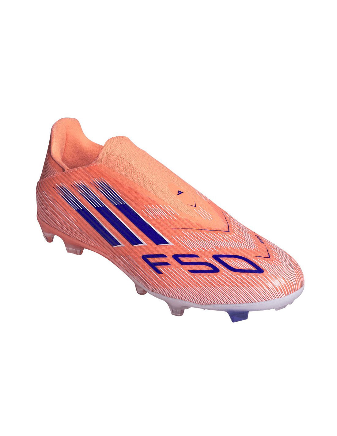 adidas F50 League LL FG/MG JH7735 Football Boots. Part of the Coral Blaze Pack, these semi-professional adidas F50 football boots are designed for players who prefer to play on natural and artificial turf. A Fiberskin upper with a Sprintgri pattern locks you down with a snug, laceless collar. A low-profile design. The Sprintplate 360 outsole is built for acceleration on a variety of surfaces. This product is made from at least 20% recycled materials.