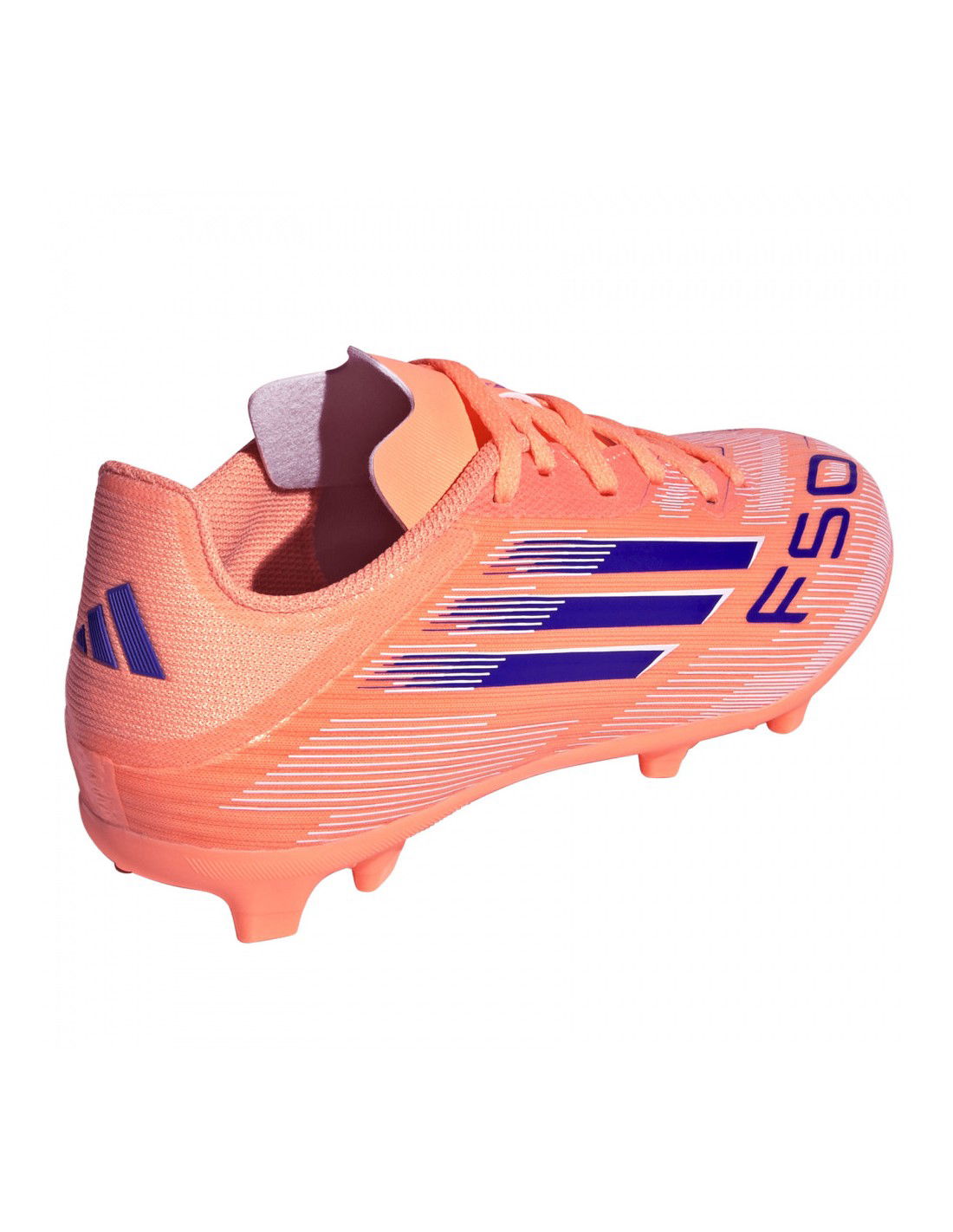 adidas F50 League FG/MG JH7746 Kids\’ Soccer Cleats. These semi-professional adidas soccer cleats are designed for kids who prefer to play on natural and artificial turf. Part of the premiere Coral Blaze Pack collection, the silhouette perfectly adapts to the anatomical shape of the foot. The Fiberskin upper features a Sprintgrid print. A flexible tongue construction. Classic lacing allows for a custom fit. The Sprintplate 360 outsole features studs for stability and traction. This product is made from at least 20% recycled materials.
