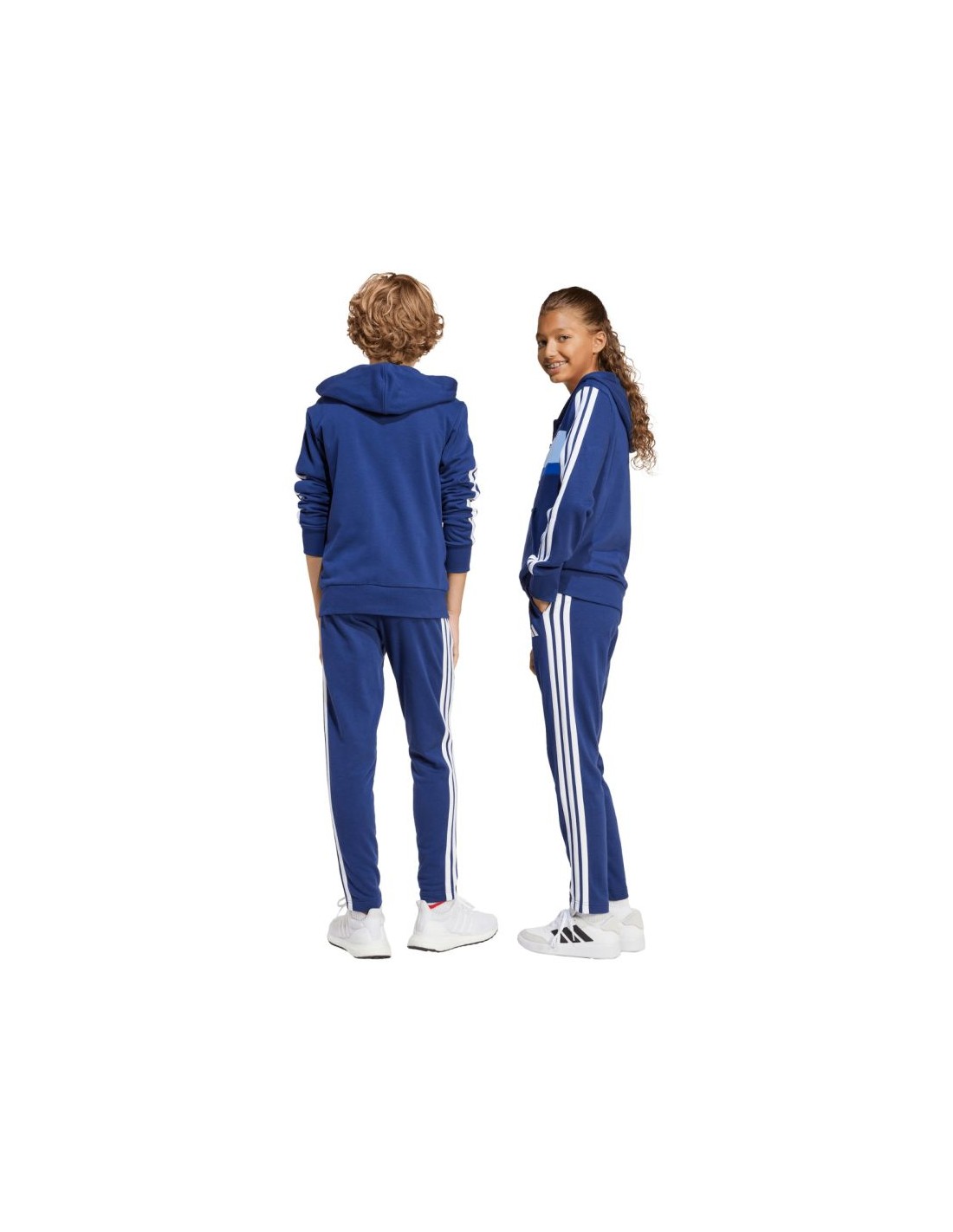 adidas Seasonal Essentials Tiberio 3-Stripes French Terry Tracksuit for Kids, Navy Blue JI6035. This adidas tracksuit for kids is the epitome of comfort. The high-cotton fabric ensures comfort. The tracksuit is suitable for training and everyday wear. The sweatshirt and pants feature pockets. Regular fit. The sweatpants have an elastic waistband with an adjustable drawstring. The full-zip hoodie has no adjustment. Material: 70% cotton, 30% polyester