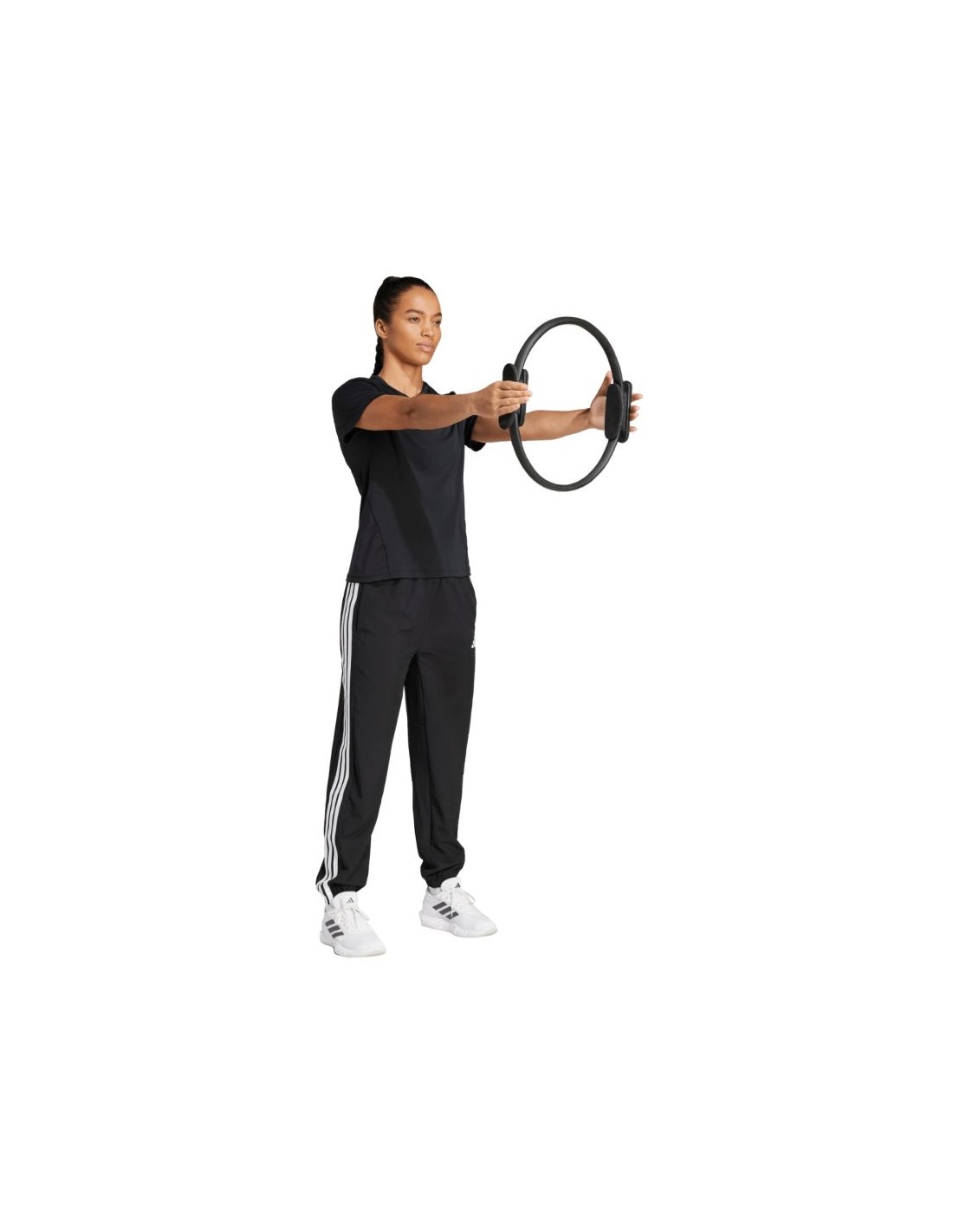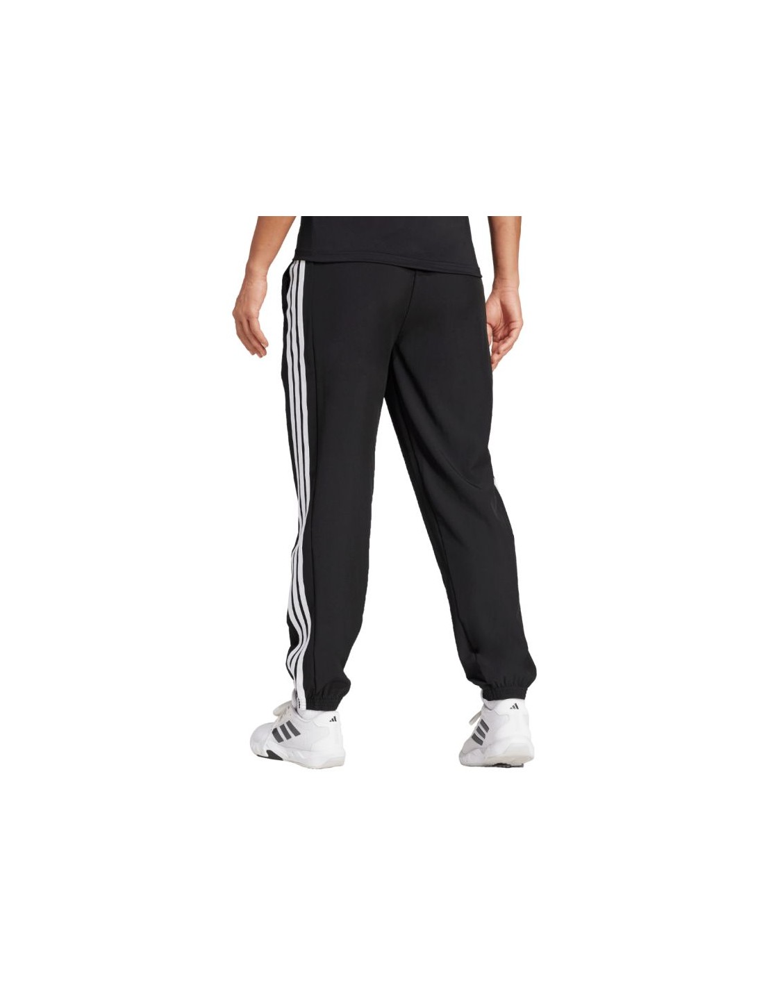 adidas Train Essentials 3-Stripes Woven Women\’s Pants, Black JI8313. These adidas women\’s pants are perfect for active wear. The adjustable mid-rise cut features an elastic waistband. Wider, slightly tapered legs are finished with elastic cuffs. Open side pockets. Climacool technology helps wick sweat away from the skin. Material: 87% recycled polyester, 13% elastane