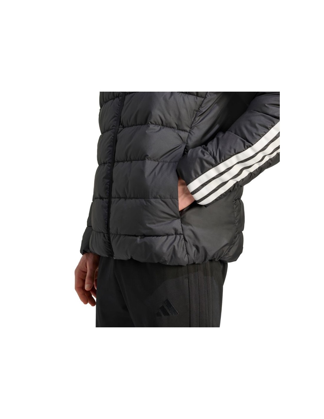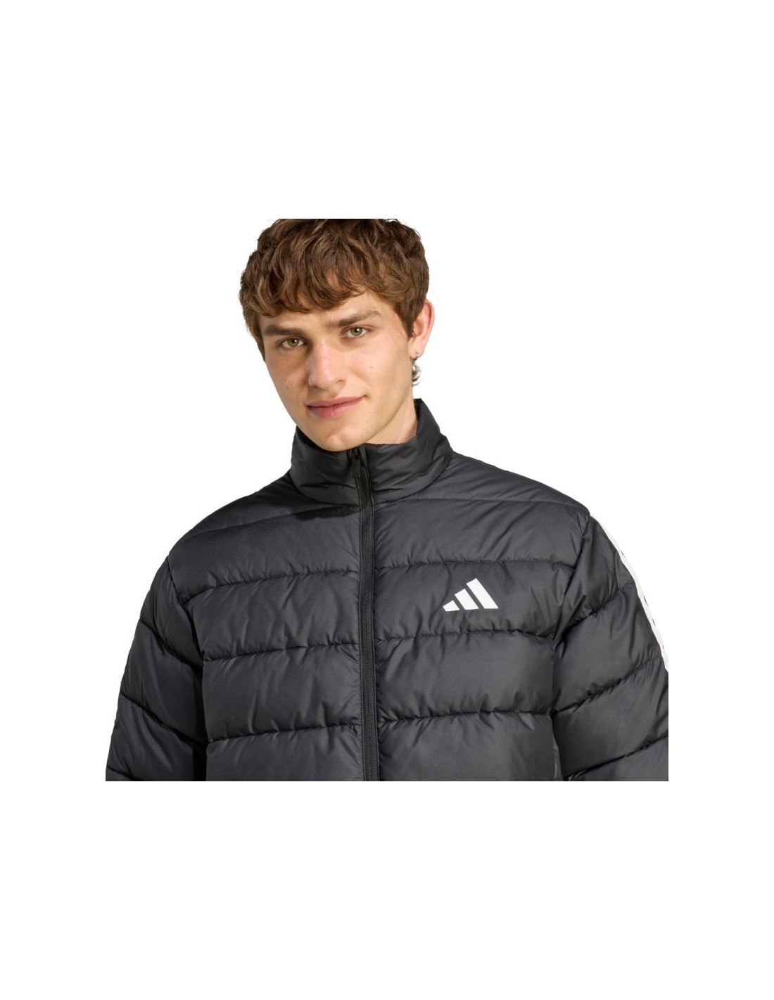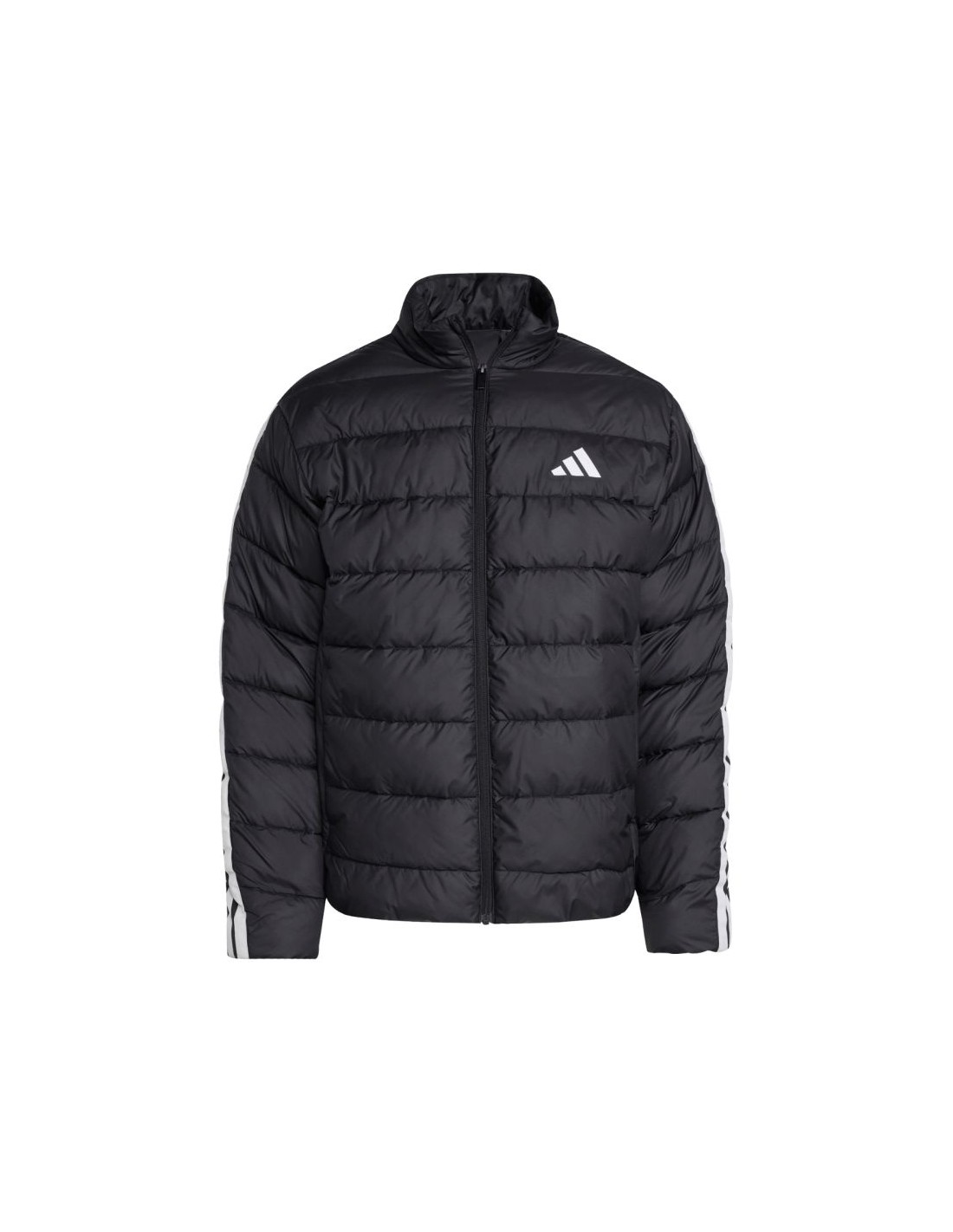 adidas Essentials 3-Stripes Men\’s Jacket, Black JM8416. This mid-weight adidas men\’s jacket is perfect for transitional periods. Durable polyester construction. DWR-coated fabric reduces moisture absorption. Climawarm technology traps heat and wicks away sweat for comfort. Synthetic fill. Regular fit. Full-length zip. Front snap pockets. This style is made from a series of recycled materials and contains 100% recycled content, just one of the proposed solutions that can help end plastic waste. Specifications: Material: 100% recycled polyester Fill: 100% polyester (synthetic down)