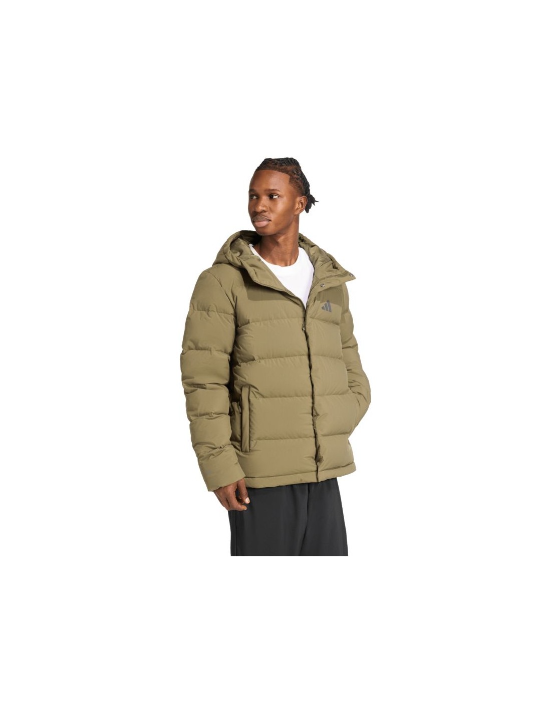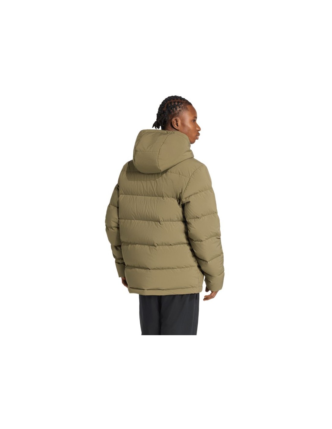 Men\’s adidas Helionic Climawarm Hoodie Jacket, Olive Green JX0580. This men\’s adidas jacket insulates against the cold thanks to its natural fill, which is enclosed in horizontal panels. Regular fit with hidden elastic cuffs. Stand-up collar. Snap-button placket and fixed hood. Full-length zip. Side zip pockets. Subtle brand logo. Specifications: Main fabric: 100% recycled polyester Filling: 80% duck down, 20% feathers