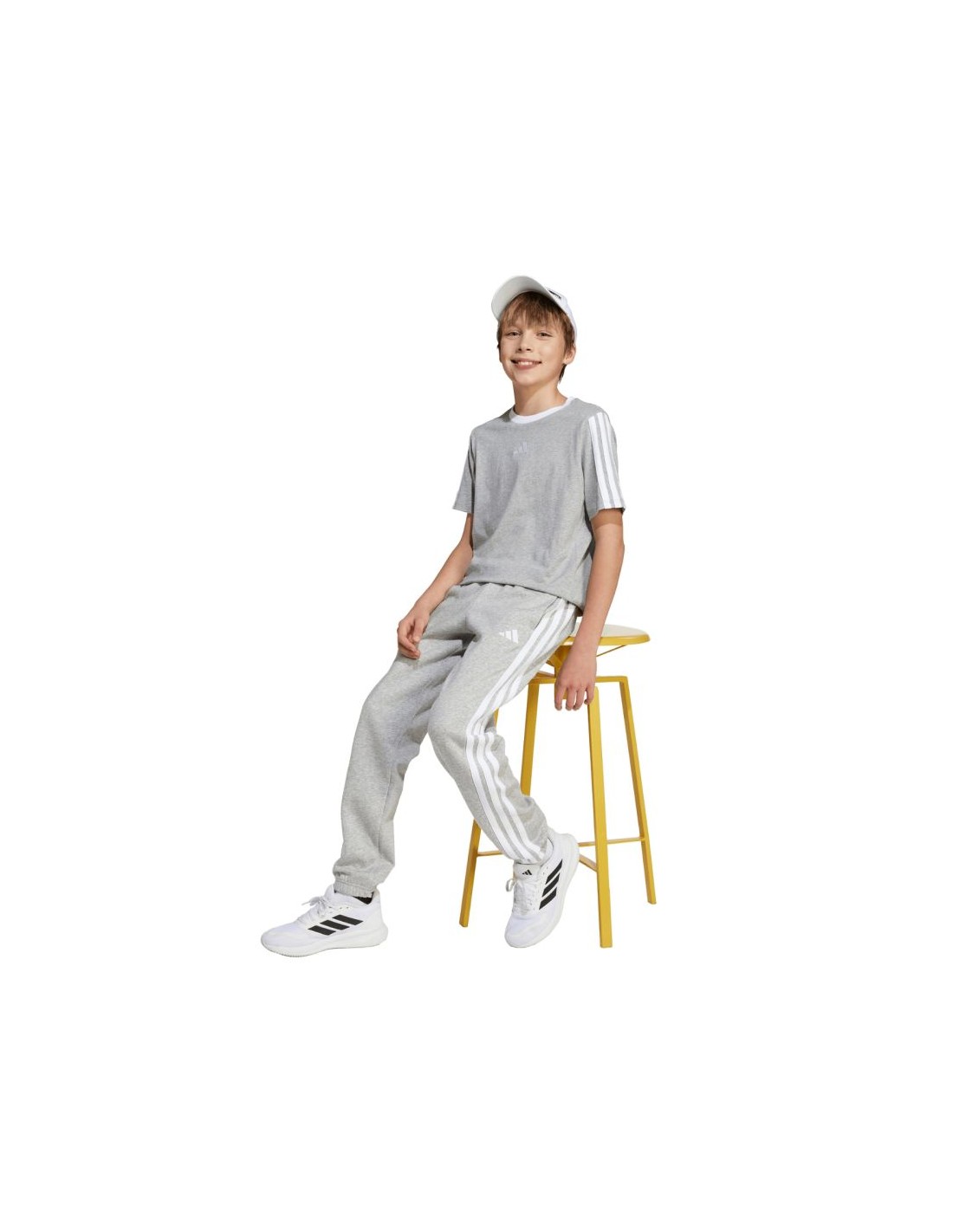 adidas Essentials Light Gray Kids\’ Pants JY4995 These adidas kids\’ pants are perfect for everyday wear. They feature a soft, cotton-rich construction with added polyester and viscose fibers. They feature an elastic waistband. They feature two side pockets. They feature stylish cuffs at the hems. They feature a discreet logo. Material: 55% cotton, 36% recycled polyester, 9% viscose.