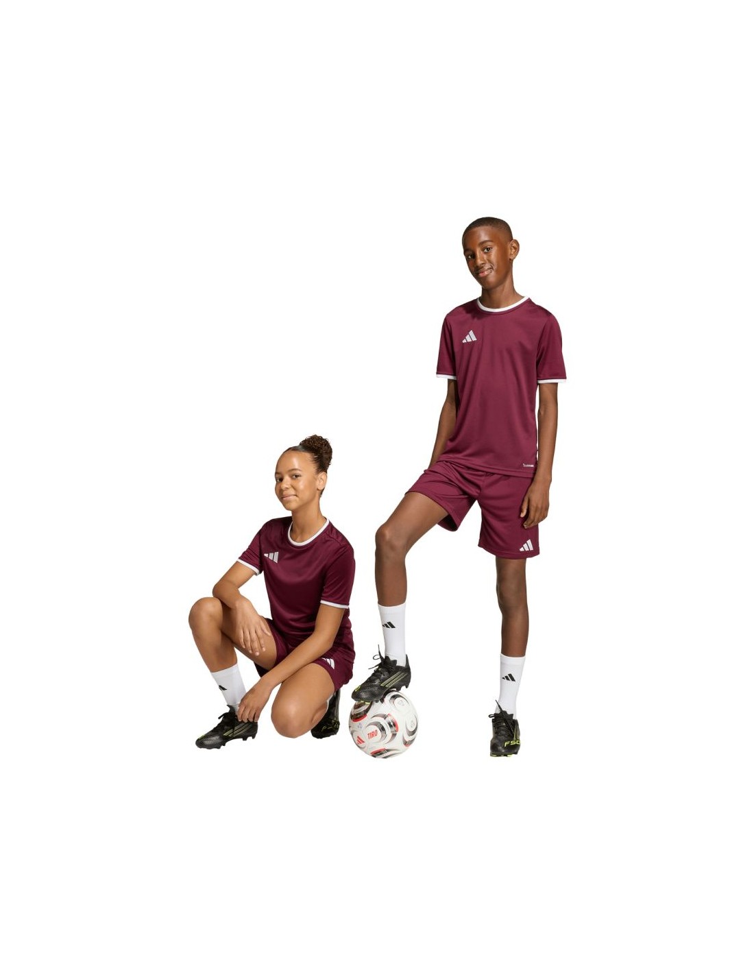 adidas Entrada 26 Burgundy Kids\’ Shorts JZ6527 adidas Entrada Kids\’ Soccer Shorts allow young players to focus on honing their skills without interruption. The lightweight construction is made entirely of recycled polyester. The classic cut allows for full range of motion. The elastic waistband with a drawstring allows for a custom fit. Subtle logo. Climacool technology. Material: 100% recycled polyester