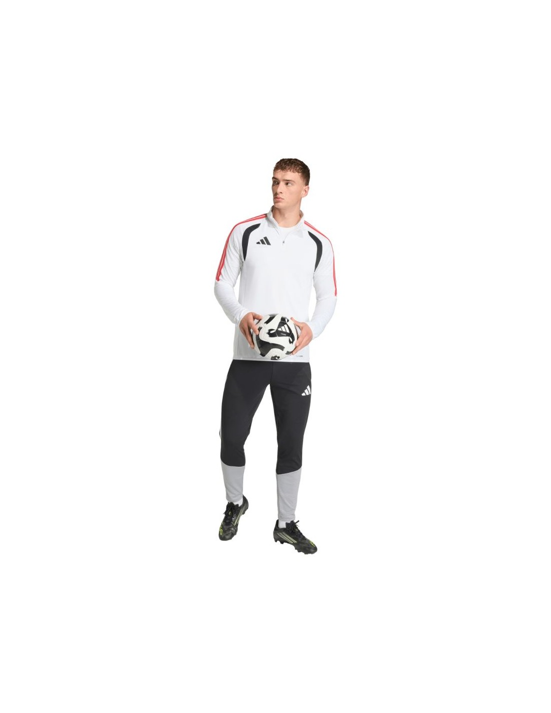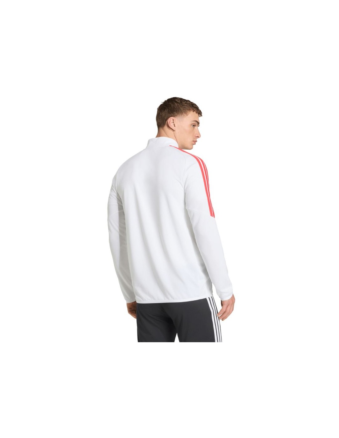 Men\’s adidas Tiro 26 League Training Top White, Black, and Red KR0371. This adidas football sweatshirt for men is perfect for training. Finished with a chin guard and a half-zip closure. Slim fit. Climacool technology is a functional solution that keeps you cool, dry, and focused on the game. The hem and cuffs are finished with elastic trim. Contrasting mesh inserts. Stripes on the sleeves. Subtle logo on the chest. Material: 100% recycled polyester