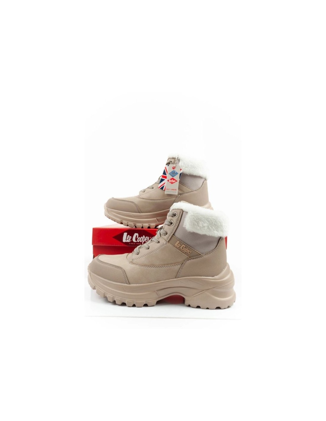 Lee Cooper women\’s winter trekking sports shoes Lee Cooper insulated beige Insulated winter boots for women. The upper is made of the highest quality eco-leather and fabric, which should be impregnated before use to provide the shoes with additional protection against moisture. Soft inner insulation effectively protects against the cold, and the raised upper stabilizes the ankle and increases comfort. The thick, fully cushioned outsole ensures comfort on every walk. The lacing system used in the shoes ensures a perfect fit to the foot. The perfect footwear for any fashionable style. Lee Cooper hiking boots for winter. The universal design of Lee Cooper shoes is perfect for both casual and sporty styles. These are shoes that will work well in autumn and winter conditions, guaranteeing warmth, comfort and a fashionable look.