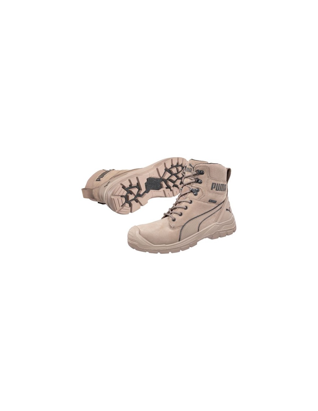 Conquest Stone High Shoes Properties: Upper material – waterproof leather – nubuck, lining – BreathActive safety footwear S3, composite protective toe cap – made of fiberglass, flexible FAP® anti-penetration sole, anatomical evercushion®pro ESD insole, SRC – anti-slip sole – PU/rubber, E – energy absorption in the heel area, FO – oil resistance, CI, HI – insulation against cold and heat, HRO – resistance to contact with heat up to 300 °C, WRU – resistance to water absorption, A – antistatic footwear, DGUV 112-191 certification