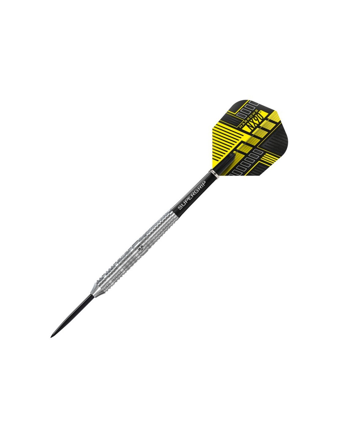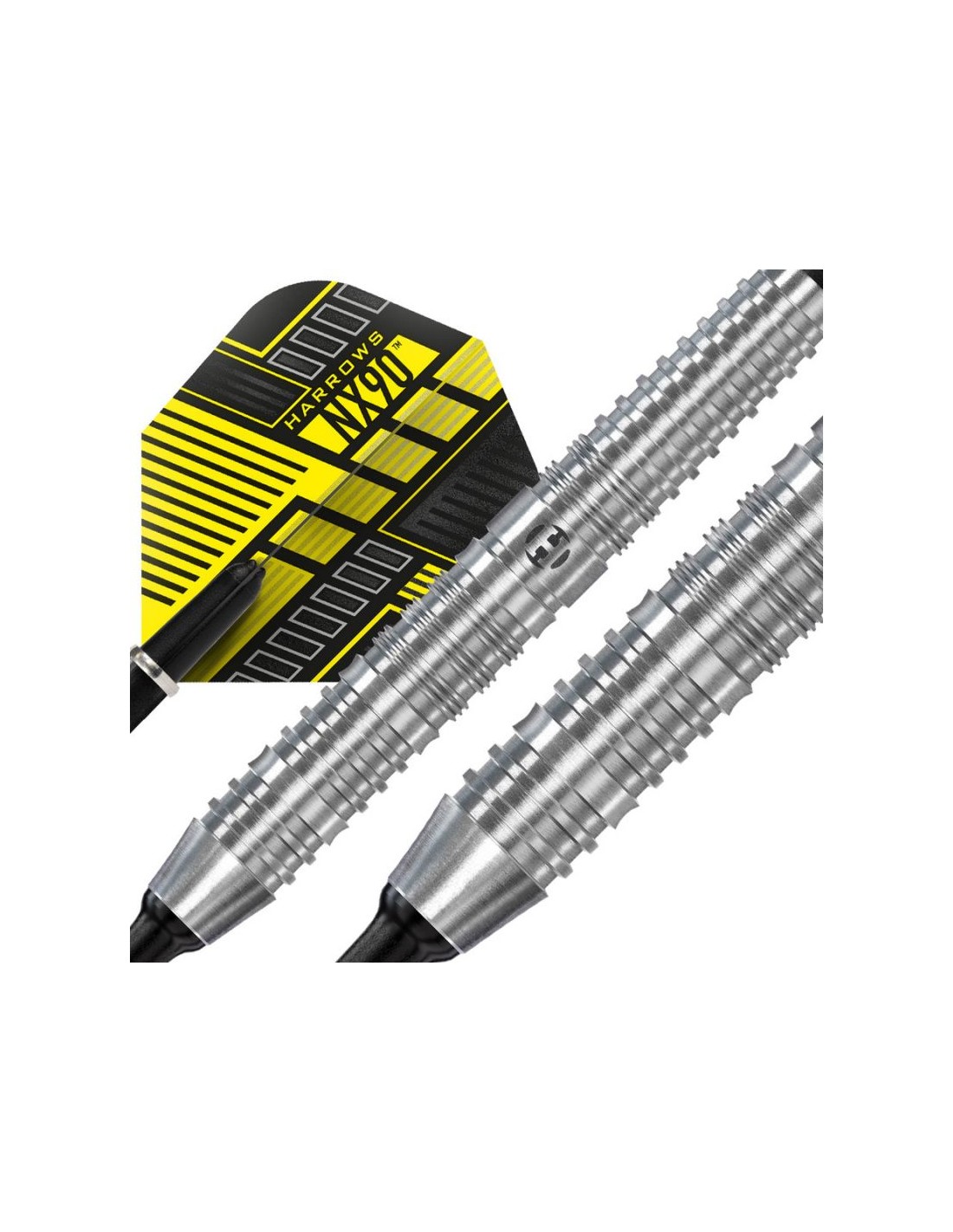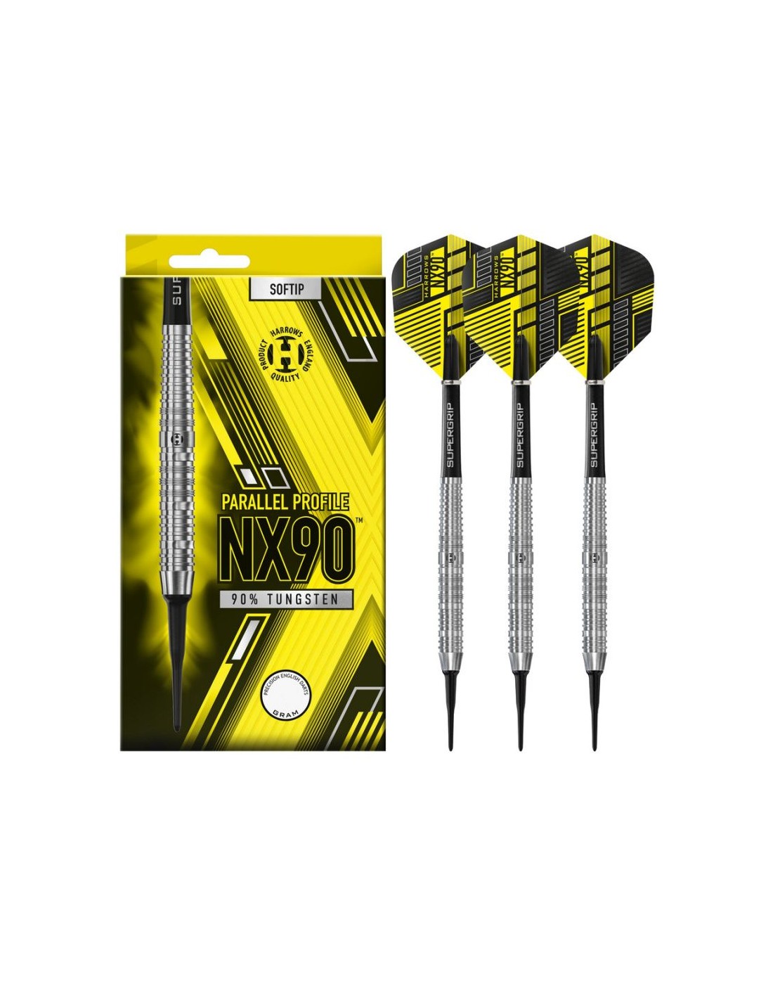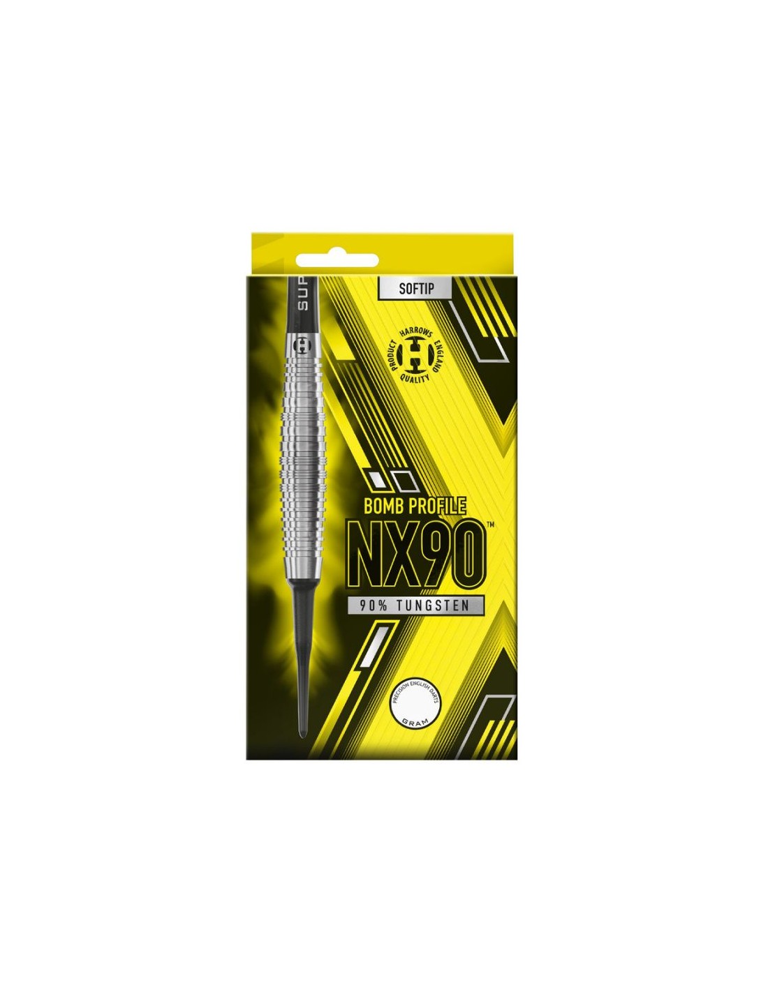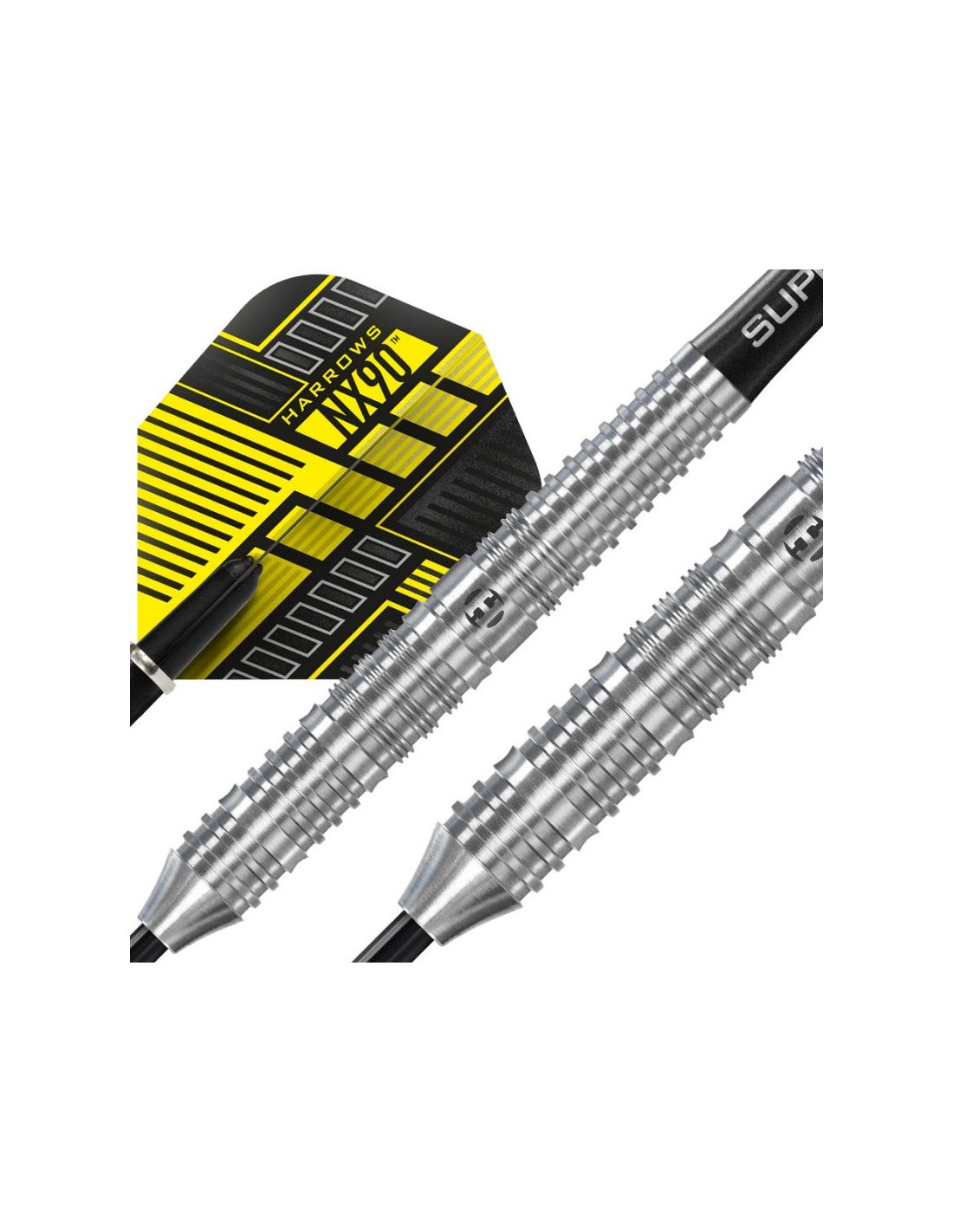 Properties: The NX90 is one of the most successful darts we\’ve released in recent years. Now available in a new profile. The popular ring, micro and wave cuts, first used on the original dart, offer all players a grip sequence tailored to their game. High quality 90% tungsten Three distinctive grip styles NX90 darts feature black, medium-sized Supergrip shafts, new 100-micron NX90 flights and are weighed to an accuracy of +/- 0.05g.