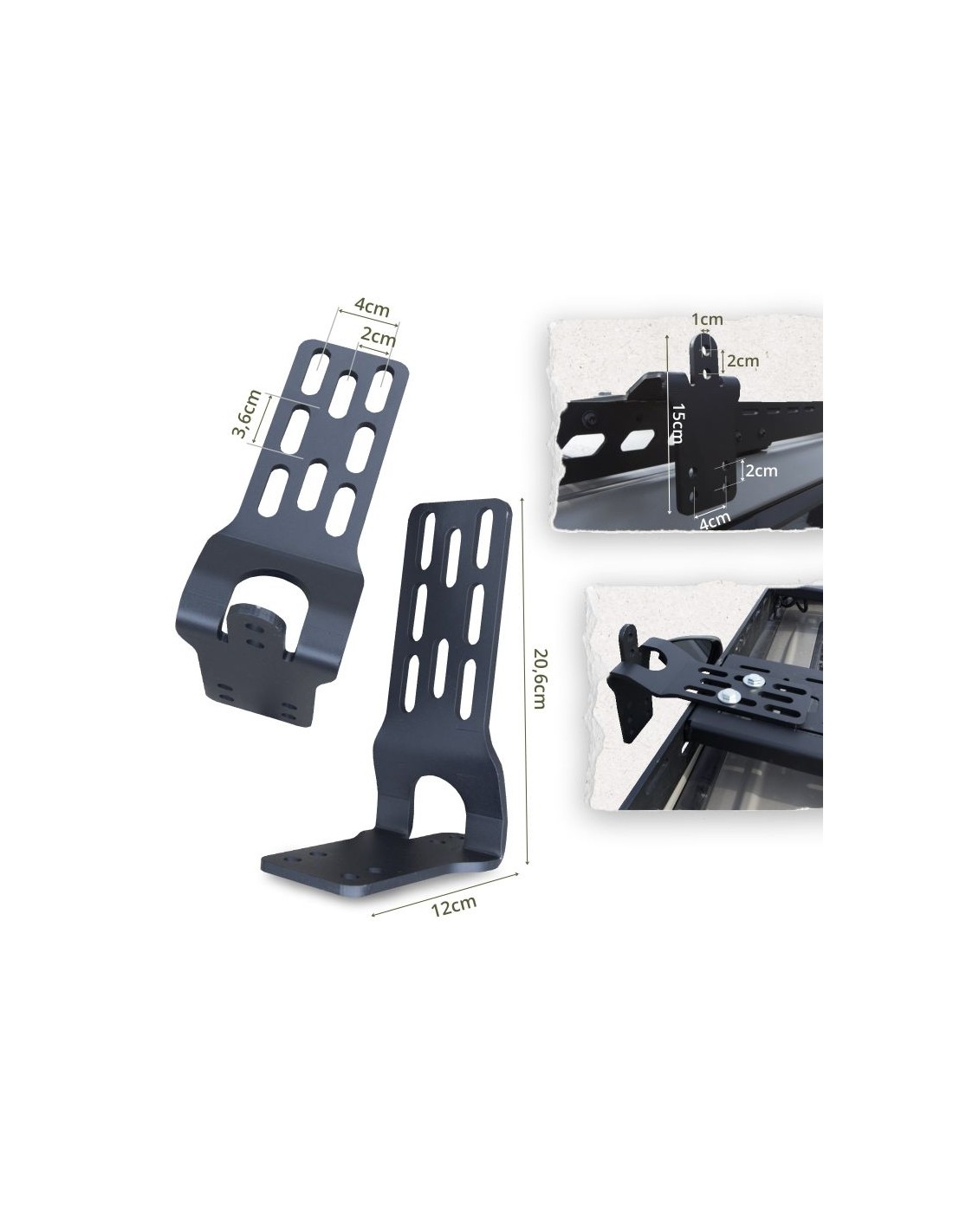 Properties: The BATWING 270 L freestanding car awning is a great way to organize the space around your car. The canopy extends 270° around the car, creating a large, shaded space where you can relax on hot days. Thanks to the fact that the awning has fully foldable legs, you can fully utilize the entire space. You can easily fit chairs, a camping table or a thermal refrigerator there. On a rainy morning, the solid, waterproof fabric (PU 2000 mm) will provide you with a dry surface where you can prepare breakfast or spend time relaxing, breathing fresh air. Technical data: Dimensions: 250 cm (radius) Weight: 25.4 kg Cover dimensions: 268 x 20 x 18 cm (L x W x H) Mounting method: mounted to roof crossbars or roof platform using the included angle brackets or to the OFFLANDER Triangle series tent using the T-SLOT technology (tent mounting accessories not included) The set includes: 4 posts, a rope to attach the end of the awning, 4 ropes and 4 pegs, 2 assembly keys Color: khaki Material: cotton blend + polyester Oxford 420D (PU 2000-3000)