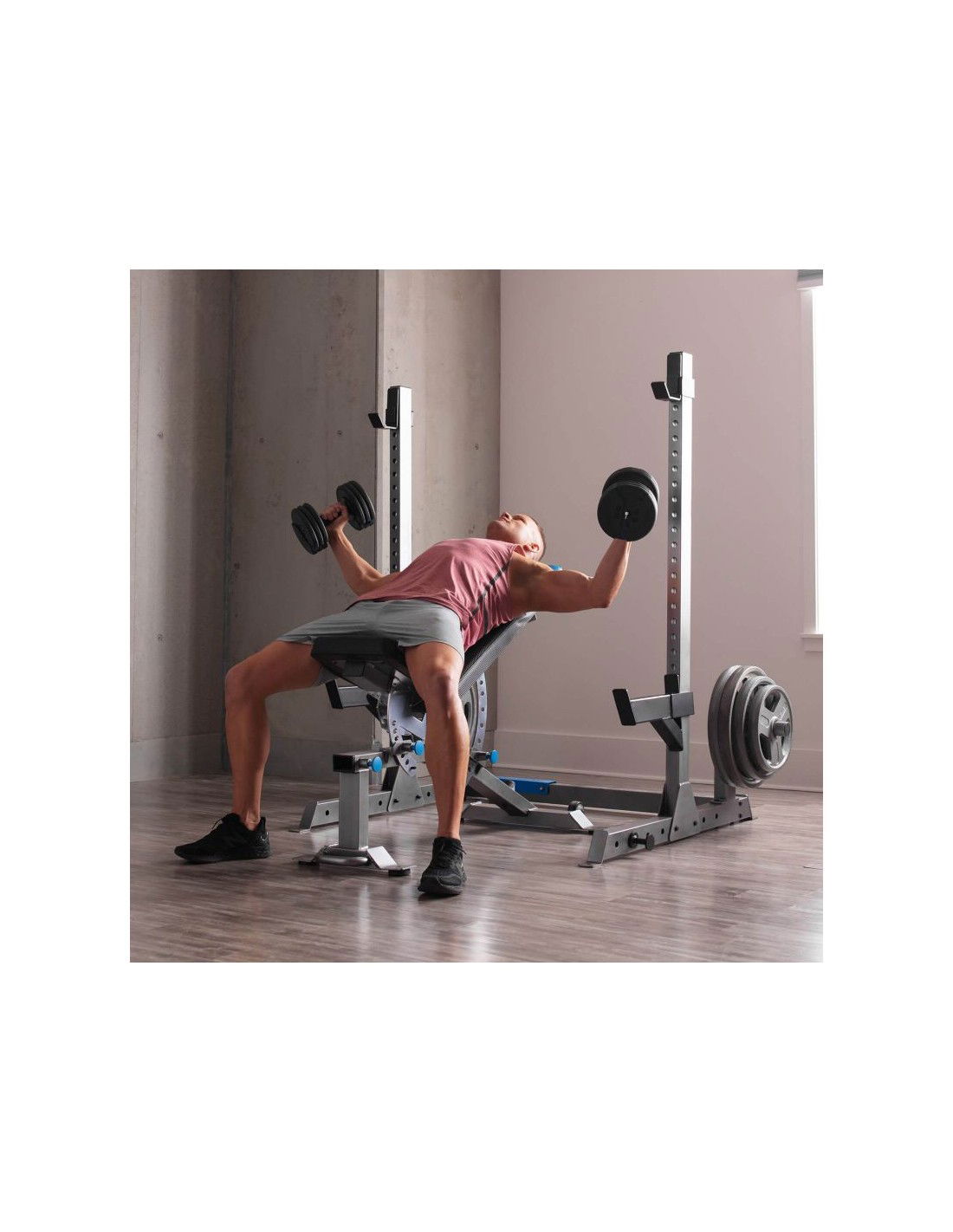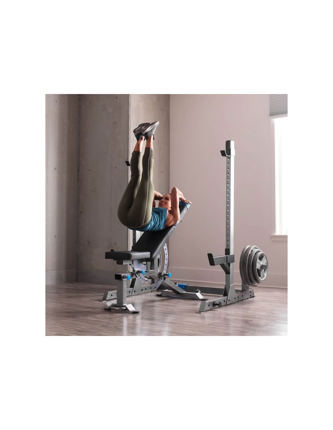 • Ο ίδιος ο πάγκος μάς δίνει πολλές δυνατότητες και σε ένα σετ με αξεσουάρ, όπως ένα προσευχητάρι, μια βάση για τα πόδια ή μια θέση για αλτήρες και μια μπάρα, σας επιτρέπει να κάνετε μια πλήρη προπόνηση όπως σε ένα κλασικό γυμναστήριο στο σπίτι σας και ταυτόχρονα να τηρείτε την τάξη.