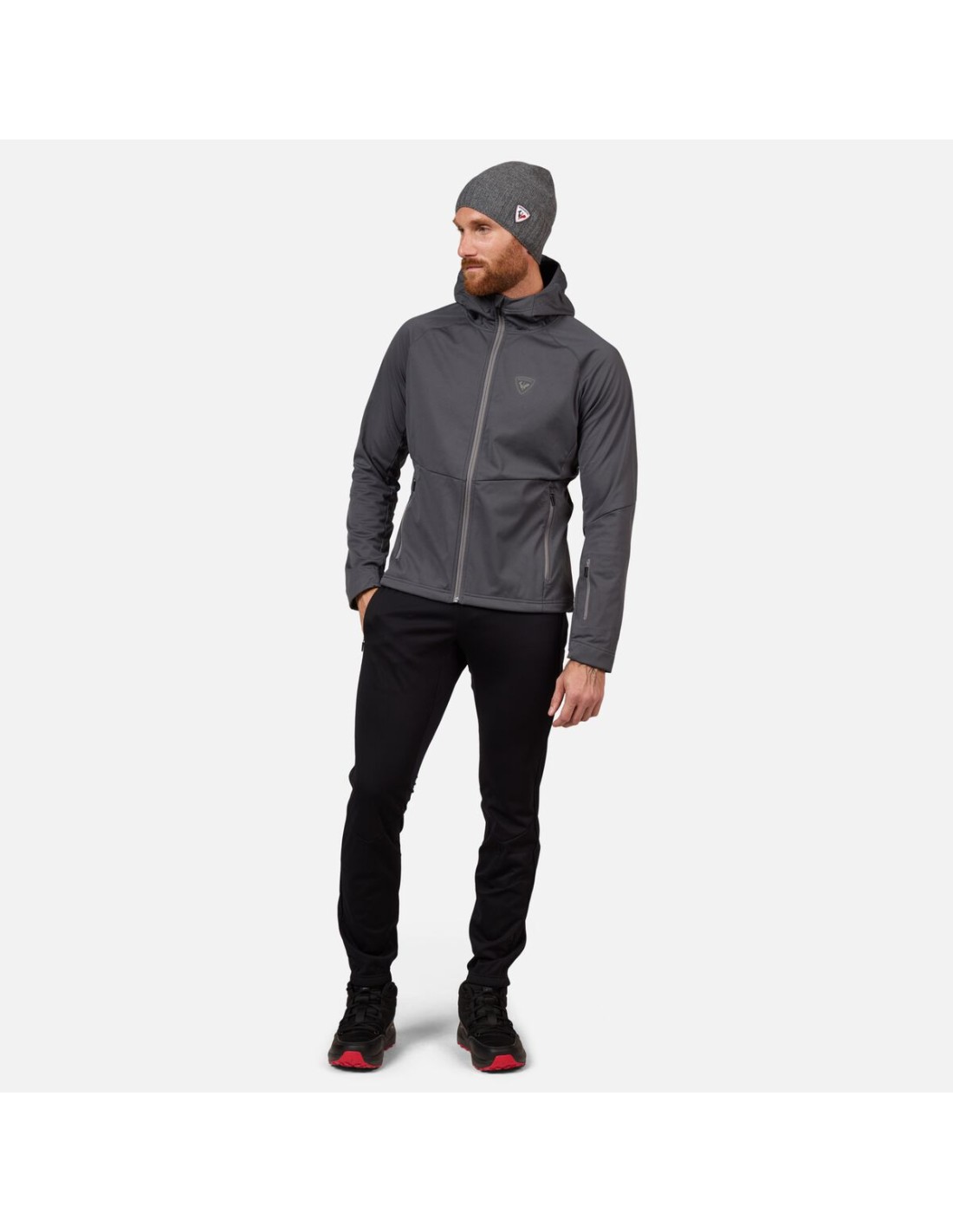 The Rossignol Genetys men\’s hooded jacket is designed as a lightweight and breathable layer ideal for Nordic skiing, hiking, and ski touring. Made of a stretchy softshell material, it provides effective protection against wind and harsh weather. A stretch panel on the back enhances breathability, aids temperature regulation, and guarantees complete freedom of movement with every stride. A soft fleece lining and adjustable hood offer additional warmth, while functional zippered side and wrist pockets hold essentials like a ski pass, keys, or documents.