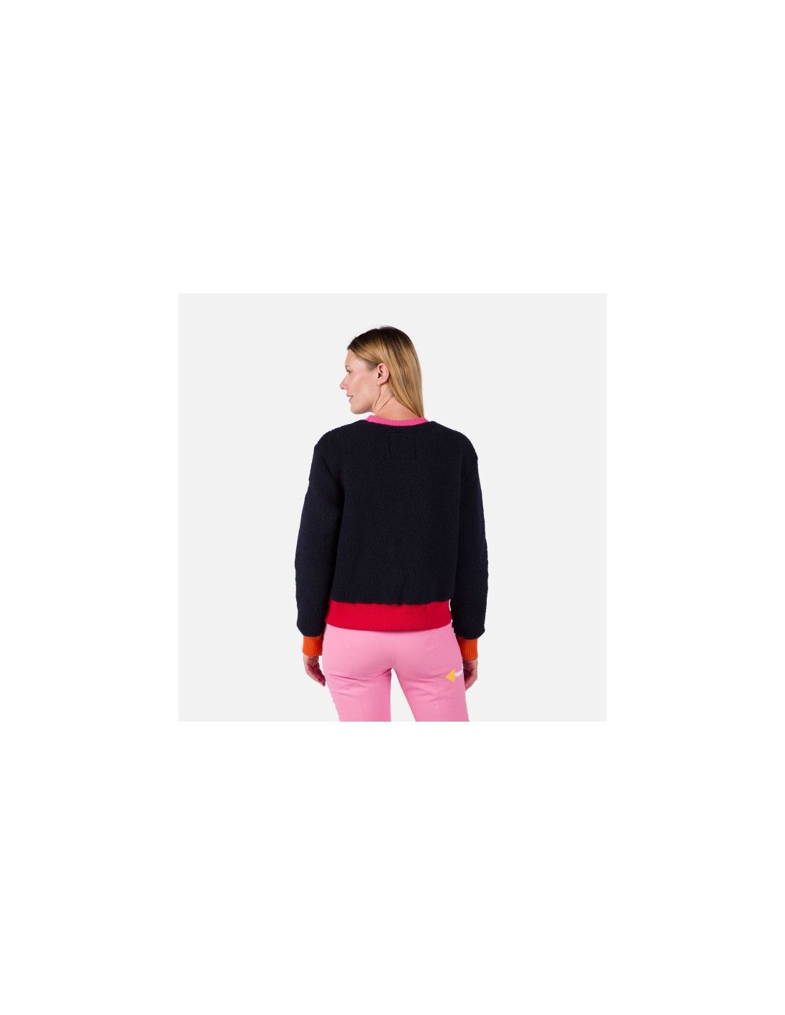 The Rossignol W Lumy Fleece Sweat for women combines chic and comfort, offering a unique style for cold days. Created in collaboration with Jean-Charles de Castelbajac, this sweatshirt features bold, colorful details that add energy to any outfit. The soft, plush teddy fleece with a wool blend provides a luxurious feel and warmth, perfect for winter days. The Rossignol Lumy sweatshirt offers not only style but also functionality. Natural wool provides excellent breathability, durability, and thermoregulation, making it ideal for everyday wear as well as winter adventures in the mountains.