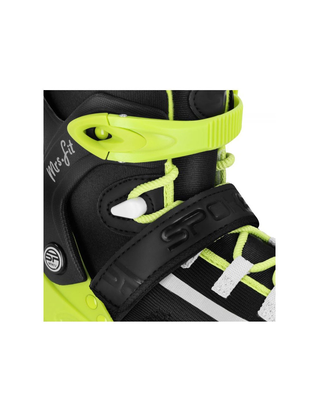 • Στην αρχή, απαιτεί λίγη υπομονή και, πάνω απ\’ όλα, δοκιμασμένο, ασφαλή εξοπλισμό. Τα πατίνια για πατινάζ αναψυχής πρέπει να είναι άνετα και καλά προσαρμοσμένα στο πόδι. Έτσι είναι η Spokey MrsFIT! Τέλειος έλεγχος και σταθερότητα κατά την οδήγηση. Ονειρεύεστε γρήγορη οδήγηση γεμάτη ελεύθερους ελιγμούς; Επιλέξτε τα πατίνια MrsFIT με ανατομικό εσωτερικό μπόι, το οποίο, σε συνδυασμό με ένα τριπλό σύστημα στερέωσης (κορδόνια, Velcro και αγκράφα δύο τμημάτων), εφαρμόζει σφιχτά στο πόδι, εμποδίζει τη μετακίνηση της φτέρνας κατά τη διάρκεια του πατινάζ και διευκολύνει την ισορροπία του σώματος.