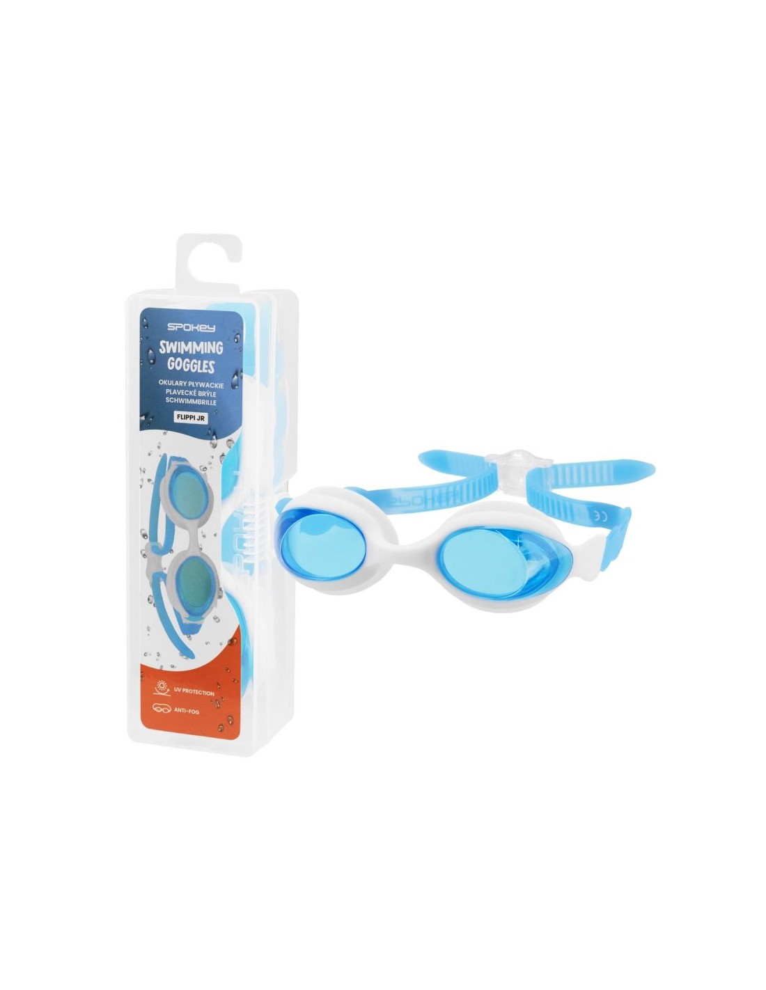 - Τα γυαλιά κολύμβησης Spokey FLIPPI διαθέτουν αντιθαμβωτική επίστρωση που αποτρέπει το θόλωμα. Τα γυαλιά τους είναι εξοπλισμένα με φίλτρο υπεριώδους ηλιακής ακτινοβολίας, πράγμα που σημαίνει ότι μπορούν επίσης να χρησιμοποιηθούν σε υδάτινα σώματα και ανοιχτές πισίνες.