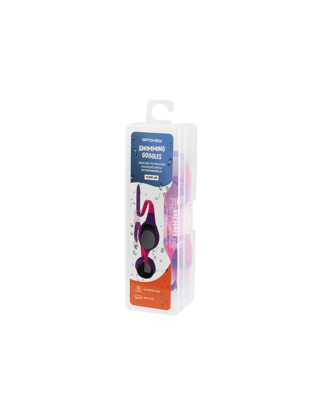 - Τα γυαλιά κολύμβησης Spokey FLIPPI διαθέτουν αντιθαμβωτική επίστρωση που αποτρέπει το θόλωμα. Τα γυαλιά τους είναι εξοπλισμένα με φίλτρο υπεριώδους ηλιακής ακτινοβολίας, πράγμα που σημαίνει ότι μπορούν επίσης να χρησιμοποιηθούν σε υδάτινα σώματα και ανοιχτές πισίνες.