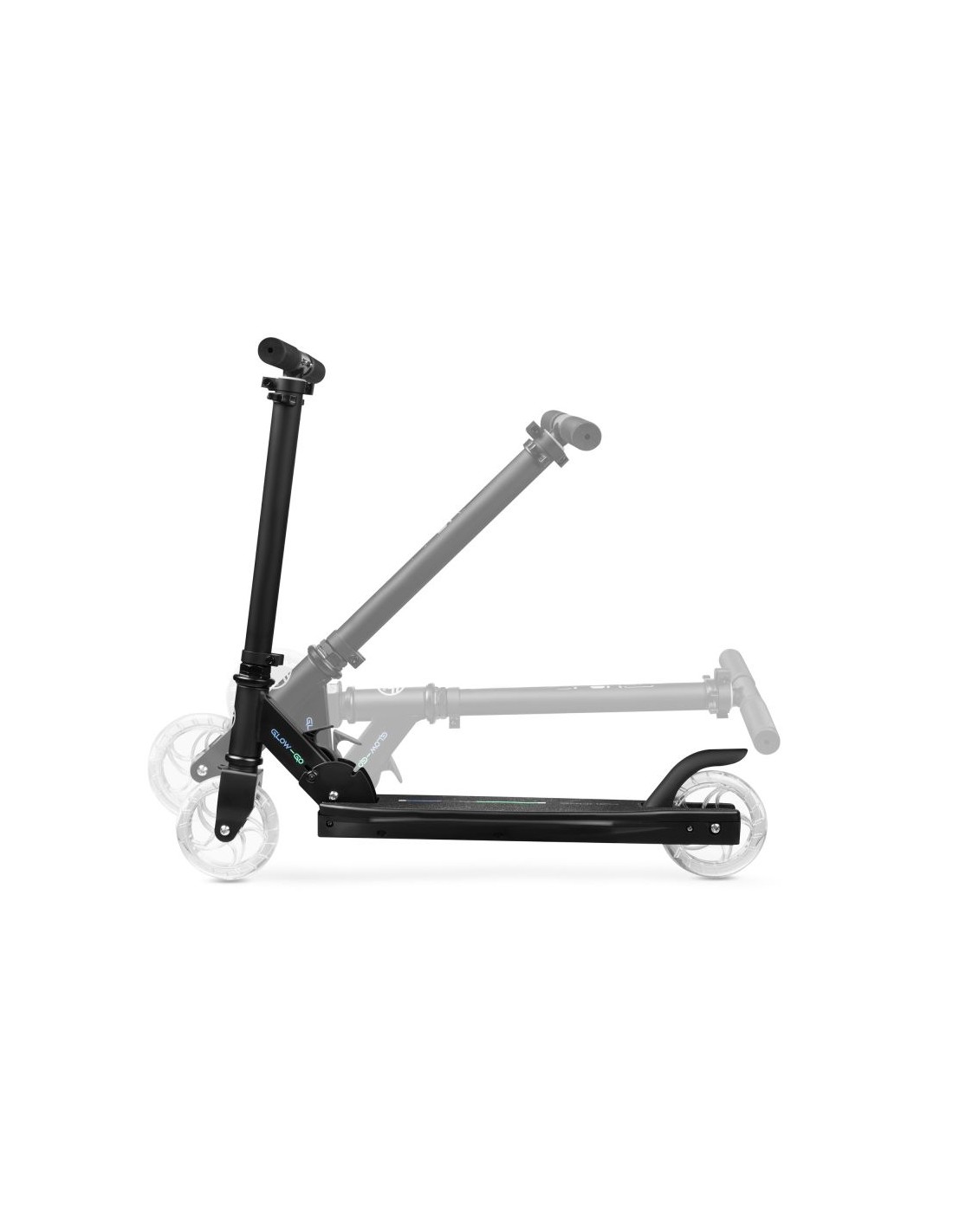 Properties: A lightweight, foldable youth scooter with eye-catching LED lighting The Glow Go scooter is the perfect choice for children and teenagers, combining functionality with aesthetics. Thanks to the built-in LED lighting and illuminated wheels, it not only provides great fun and a spectacular effect, but also visibility on the road. Its low weight and foldability make it extremely convenient to transport and store. Key features: LED backlight: color changing for an eye-catching ride. Transparent, illuminated wheels: 120 mm diameter for smooth movement and better visibility after dark. Anti-slip deck: stability while riding. Adjustable handlebar height: three levels (66-71-76 cm) adapted to the user\’s height. Foot brake: easy and safe stopping. Compact: easy folding and lightweight design (2.95 kg). The Glow Go scooter is a perfect option for young users looking for unique equipment for recreational riding. The Glow Go stands out from other models in its class thanks to its LED backlight with the ability to change the light color while riding, and transparent, glowing wheels that illuminate the route after dark. The design of the scooter is light and at the same time durable. The non-slip deck ensures stability, and the adjustable handlebar allows for adjustments to the individual needs of a child or teenager, allowing the Glow Go to grow with its owner. Thanks to its low weight and foldable design, the scooter is easy to carry and store, making it an ideal solution for both everyday fun and trips. Why choose the Glow Go scooter? Eye-catching design: LED lighting and illuminated wheels attract attention and add to the driving fun. Lightness and mobility: compact dimensions and low weight make it easy to transport and store. Safety and comfort: the non-slip deck and rubber handles increase stability and comfort while riding, and LED lights increase the user\’s visibility after dark. Height adjustment: adjustable handlebar allows use by children and teenagers of different heights. Ease of use: simple folding system and foot brake for greater convenience. Technical data: Material: plastic, steel Wheels: PC, 120 mm, transparent, illuminated Scooter dimensions: 76 x 66 x 33 cm Dimensions when folded: 66 x 12 x 24 cm Adjustable handlebar height: 66-71-76 cm Footbrake Weight: 2.95 kg Maximum user weight: 50 kg Standard: EN-71 Recommended for: recreational riding Skill level: beginner, intermediate Safety notes: Personal protective equipment must be worn. Not suitable for children weighing more than 100 kg. To be used under adult supervision. Do not use in traffic. Instructions for use