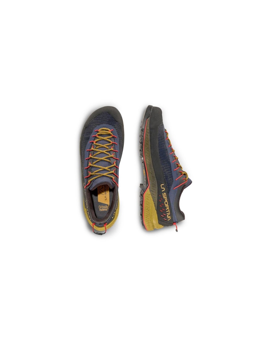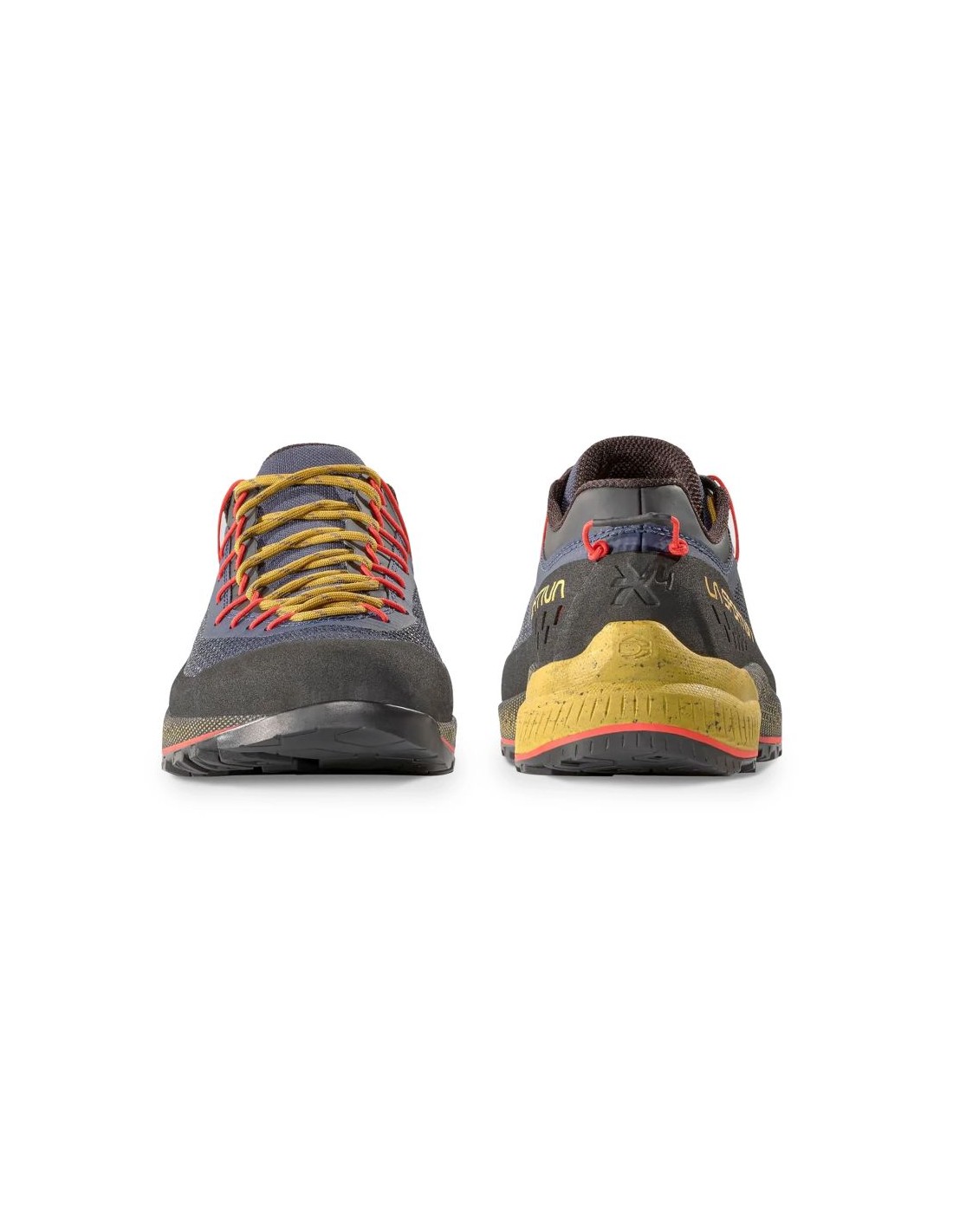 La Sportiva TX4 EVO ST ZFAS049B46E32 NIGHT SKY/SAVANA The La Sportiva TX4 Evo ST Night Sky/Savana is a shoe for those who need a high-performance shoe for technical approaches, via ferratas, and challenging terrain. The HT mesh upper, reinforced with PES and TPU fibers, provides breathability, lightweight, and abrasion resistance. The lack of a high cuff makes the shoe more flexible and better suited to steep approaches and climbing. A 4mm Ortholite Hybrid Approach insole enhances comfort, while EVA cushioning and a Vibram MegaGrip outsole with Impact Brake System provide stability and traction on both wet and dry surfaces. A climbing zone at the toe allows for more precise footwork on rocky sections. The Resole Platform™ system allows for a replaceable sole, increasing durability. Half a pair weighs approximately 405g, making them quite lightweight—a good combination of performance and comfort.