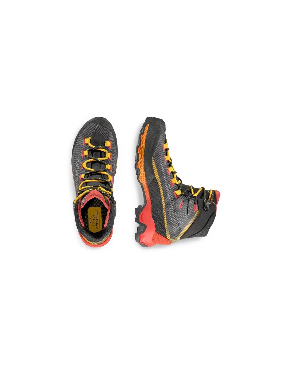 La Sportiva Aequilibrium Hike GTX ZFHS137G00Y00 carbon/yellow The La Sportiva Aequilibrium Hike GTX Carbon/Yellow is designed for those who need versatile outdoor shoes capable of handling a variety of terrain—from gravel and rocky paths to mud and light wet sections. The upper is made of durable, waterproof fabric, keeping the shoes lightweight and breathable, while reinforcements at the forefoot and heel protect against damage. A GORE-TEX Extended Comfort membrane ensures your foot stays dry even in wet conditions. The 3D Flex System Evo™ allows for natural ankle movement, improving comfort, especially on steep descents and uneven surfaces. The Double Heel™ heel construction helps control descents and facilitates foot roll, reducing fatigue. A 5mm thick footbed and PU foam midsole with a TPU film add cushioning and durability. The Vibram outsole with Impact Brake System offers good traction. The weight of one piece is approximately 480 g, which makes them relatively light for high trekking shoes.