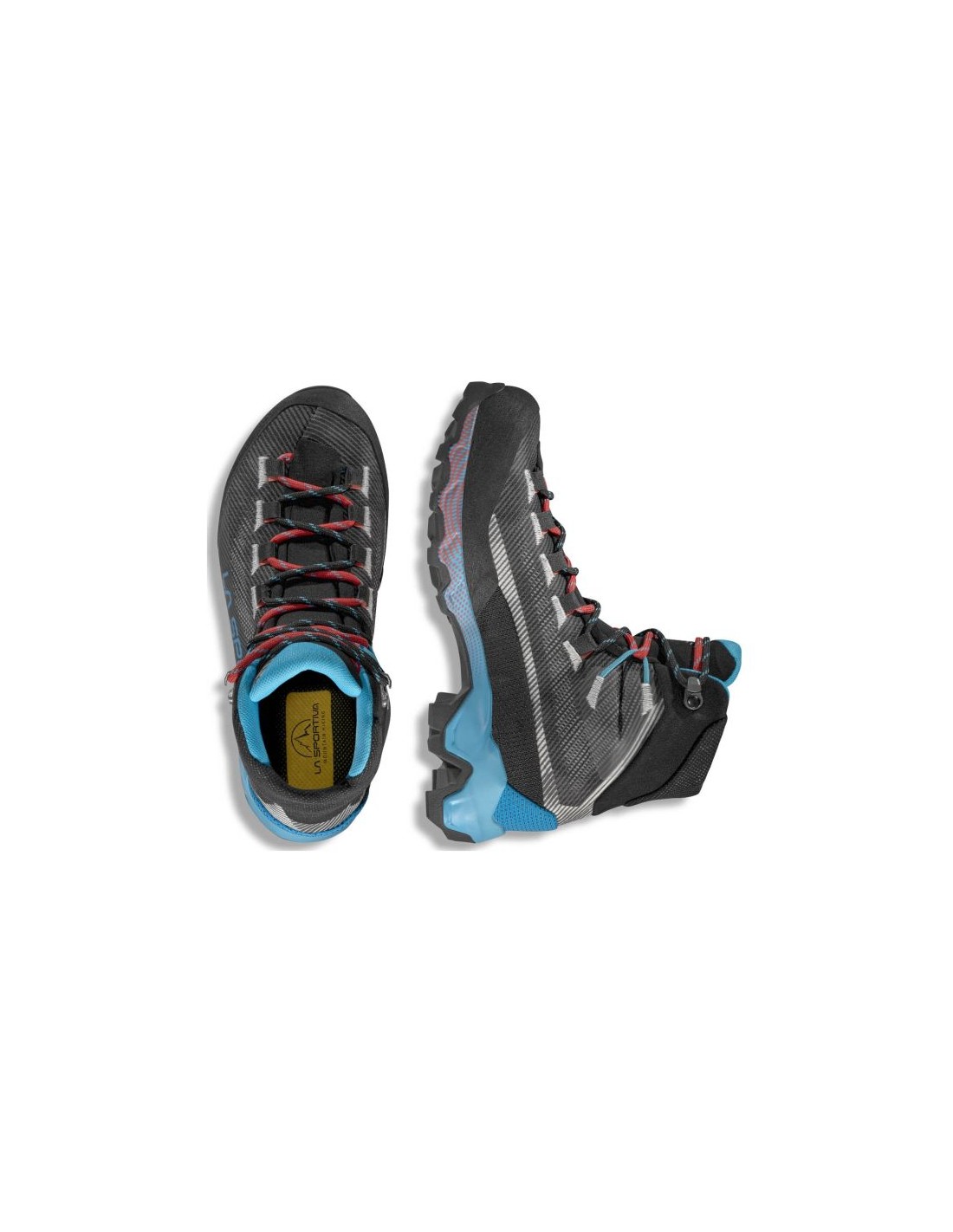 La Sportiva Aequilibrium Hike Woman GTX Carbon/Malib The La Sportiva Aequilibrium Hike Woman GTX Carbon/Malibu Blue is a women\’s trekking shoe that combines comfort, lightweight construction, and protection. The upper, made of abrasion-resistant synthetic fabric with a water-repellent finish, provides protection against moisture and abrasion, while the Gore-Tex Extended Comfort membrane protects feet from rain while maintaining breathability. The 3D Flex System Evo™ allows for natural ankle movement and adapts to uneven terrain while providing adequate support. The Double Heel™ heel construction improves braking on descents and allows for a smoother roll, resulting in less fatigue on long hikes. The Vibram SpringLug Tech sole with Impact Brake System tread provides reliable traction on a variety of surfaces—rocks, dirt, and wet rocks. Polyurethane foam in the midsole, along with an abrasion-resistant TPU film, improve cushioning and durability. The 5 mm footbed of the Mountain Hiking boots ensures softness and comfort even after long hours of walking. Each pair weighs approximately 480 g, making them relatively lightweight for a high-top trekking shoe.