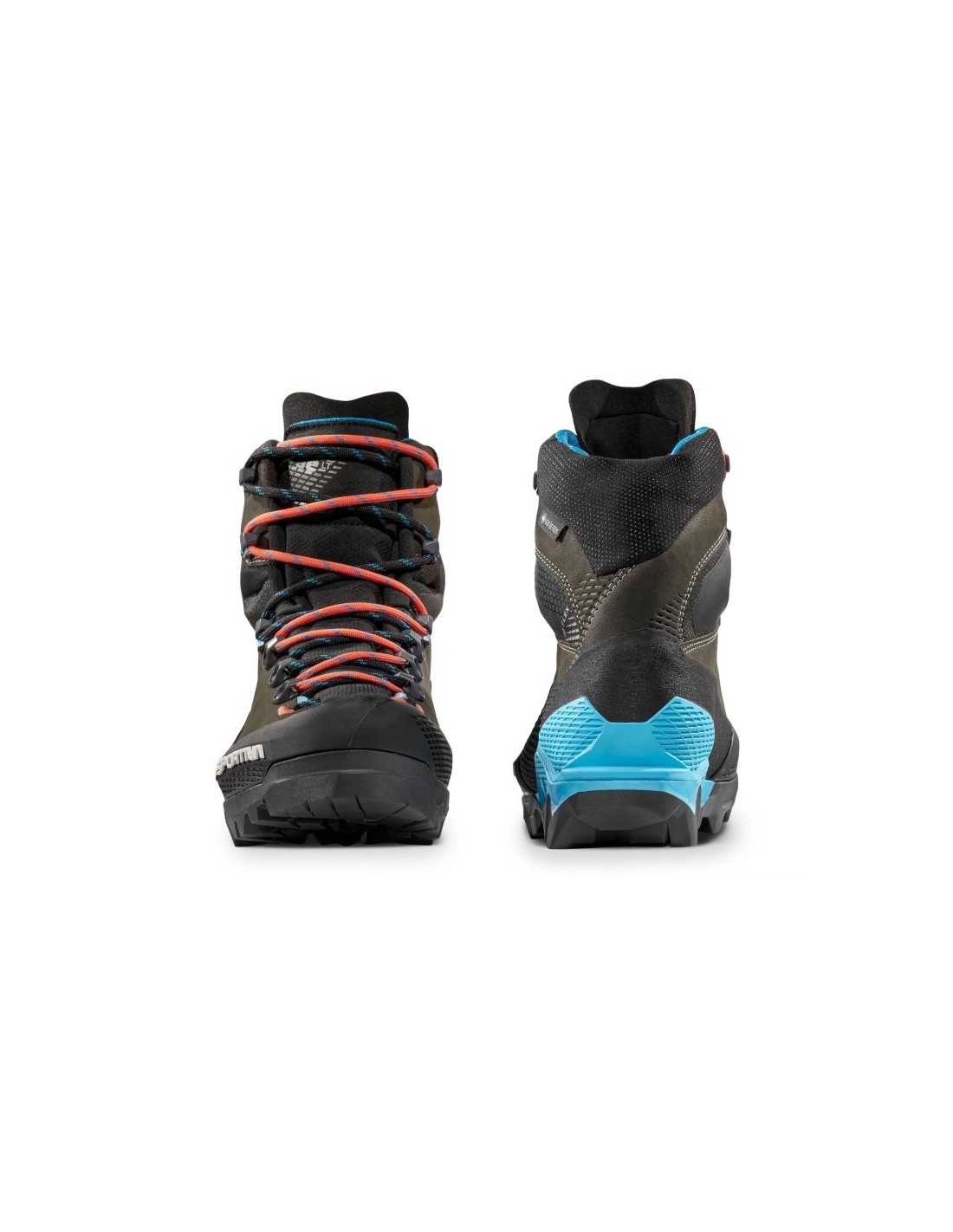 La Sportiva Aequilibrium LT Woman GTX ZFMS097K00P02 Black/Hibiscus The La Sportiva Aequilibrium LT GTX Black/Hibiscus is a model designed for multi-day high-altitude trekking and expeditions with a large backpack. The upper is made of waterproof nubuck with abrasion-resistant textile inserts, reinforced with TPU on the front and other critical areas. The Gore-Tex Performance Comfort membrane provides effective moisture protection while maintaining breathability. The Vibram SpringLug Tech outsole with Impact Brake System tread provides confident grip on rocks, wet crags, and steep descents. The interior features a bellows tongue and a soft collar for increased comfort and protection from rocks and snow. The 3D Flex System Evo™ provides ankle stability, while the Double Heel™ heel construction improves braking on descents, reducing muscle fatigue. Compatibility with semi-automatic crampons allows for use in icy and snowy conditions. The shoe weighs approximately 525g per piece, a reasonable balance for an alpine model, providing protection and usability.